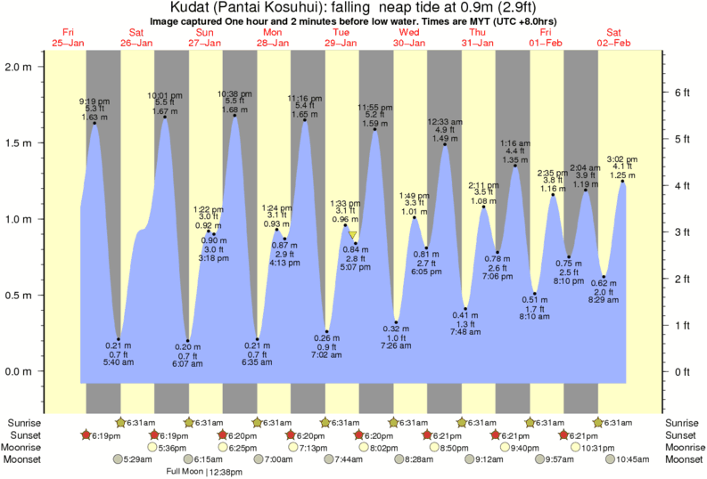 Image captured One hour and 2 minutes before low water (falling neap tide). Tide height was 0.9m (2.9 ft). Range 1.99m (6.5 ft). Toggle tide graph