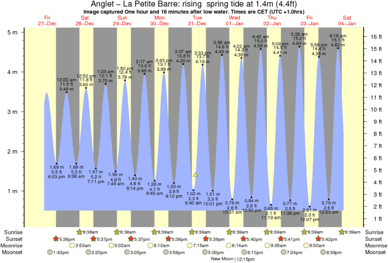 Image captured One hour and 16 minutes after low water (rising spring tide). Tide height was 1.4m (4.4 ft). Range 4.19m (13.7 ft). Toggle tide graph