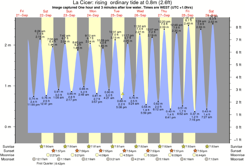 Image captured One hour and 3 minutes after low water (rising ordinary tide). Tide height was 0.8m (2.6 ft). Range 2.57m (8.4 ft). Toggle tide graph
