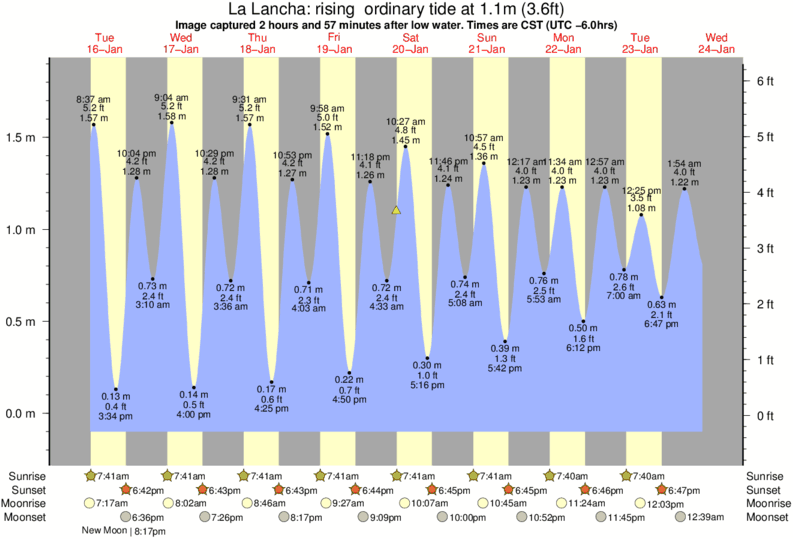 Image captured 2 hours and 55 minutes before high water (rising ordinary tide). Tide height was 1.1m (3.6 ft). Range 1.85m (6.1 ft). Toggle tide graph