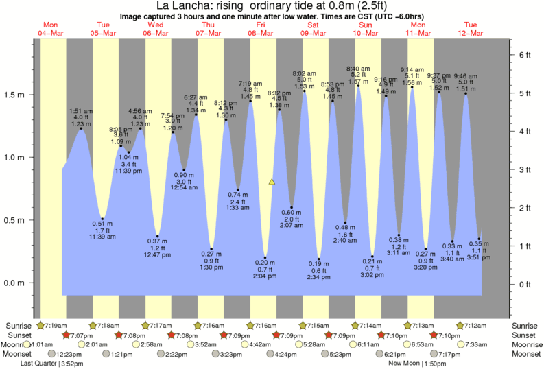 Image captured 3 hours and one minute after low water (rising ordinary tide). Tide height was 0.8m (2.5 ft). Range 1.86m (6.1 ft). Toggle tide graph