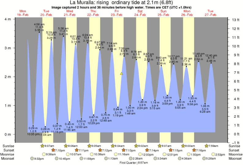 Image captured 2 hours and 36 minutes before high water (rising ordinary tide). Tide height was 2.1m (6.8 ft). Range 3.63m (11.9 ft). Toggle tide graph