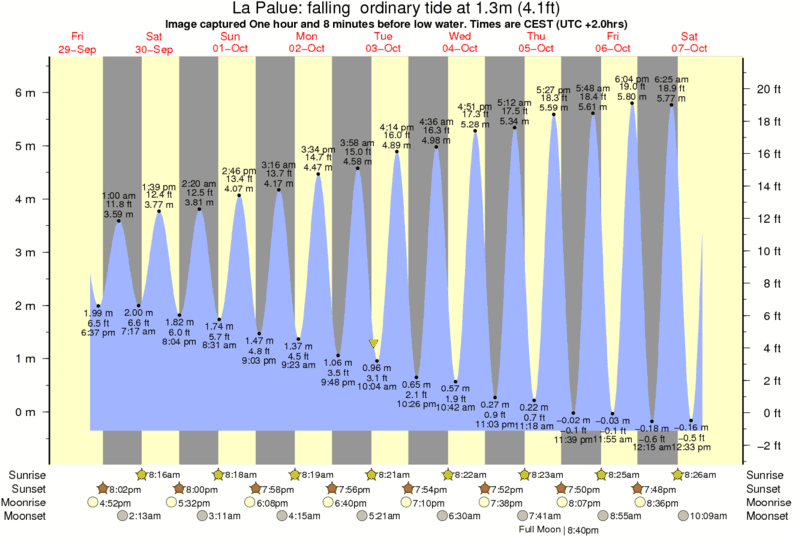 Image captured One hour and 8 minutes before low water (falling ordinary tide). Tide height was 1.3m (4.1 ft). Range 6.39m (21.0 ft). Toggle tide graph
