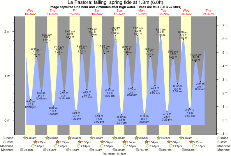 Image captured One hour and 2 minutes after high water (falling spring tide). Tide height was 1.8m (6.0 ft). Range 2.23m (7.3 ft). Toggle tide graph
