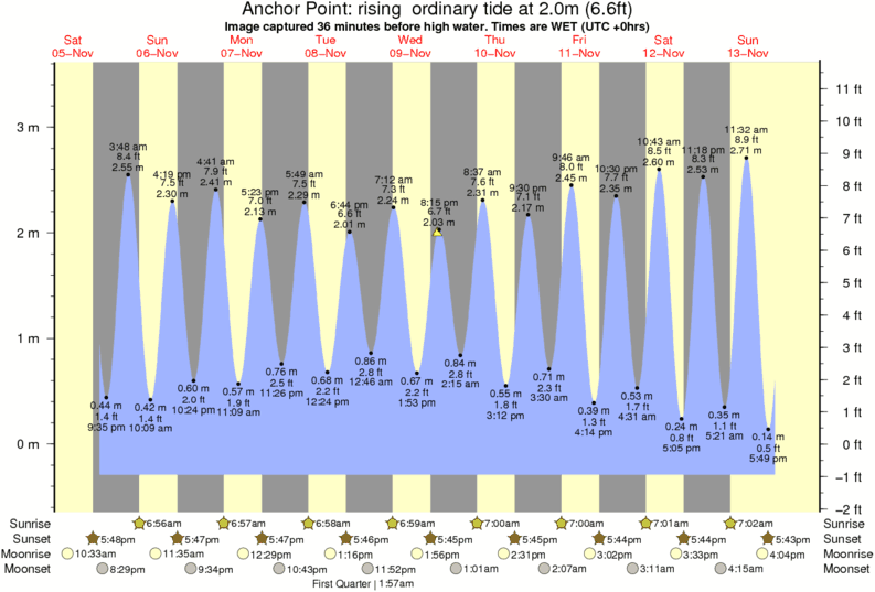 Image captured 36 minutes before high water (rising ordinary tide). Tide height was 2.0m (6.6 ft). Range 3.55m (11.6 ft). Toggle tide graph