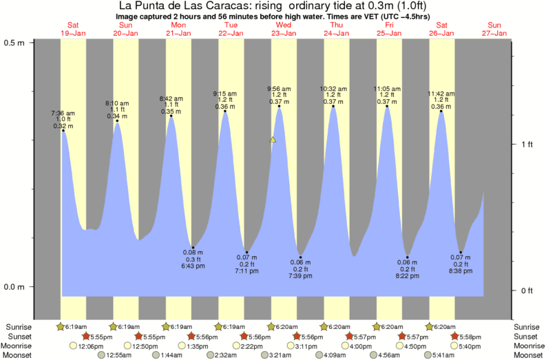 Forecast wind and swell just offshore from La Punta de Las Caracas around the time the photo was taken