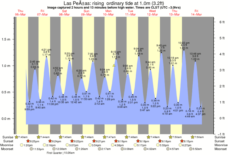 Image captured 2 hours and 13 minutes before high water (rising ordinary tide). Tide height was 1.0m (3.2 ft). Range 1.85m (6.1 ft). Toggle tide graph