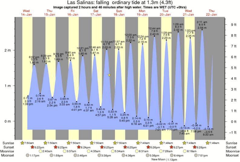 Forecast wind and swell just offshore from Las Salinas around the time the photo was taken