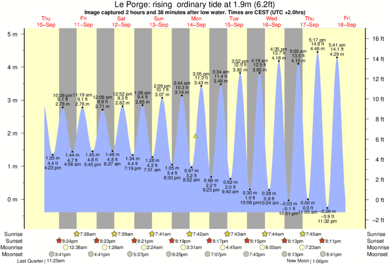 Image captured 2 hours and 38 minutes after low water (rising ordinary tide). Tide height was 1.9m (6.2 ft). Range 5.06m (16.6 ft). Toggle tide graph