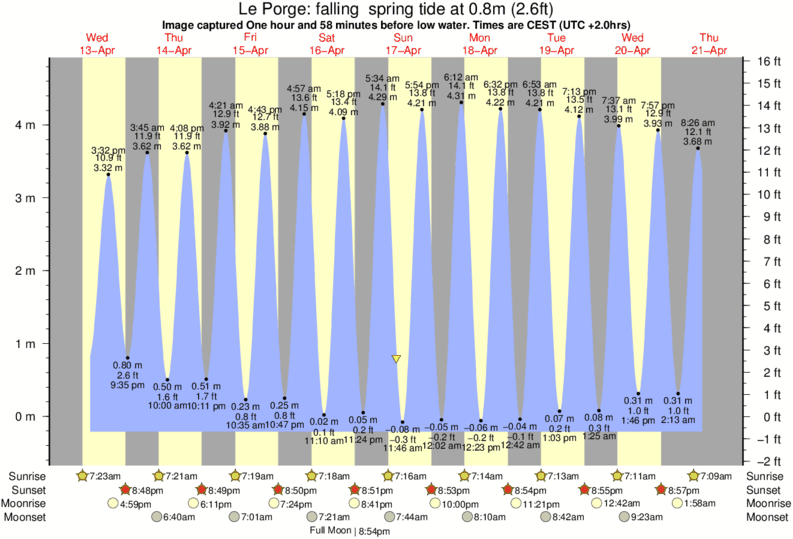 Image captured One hour and 58 minutes before low water (falling spring tide). Tide height was 0.8m (2.6 ft). Range 4.67m (15.3 ft). Toggle tide graph