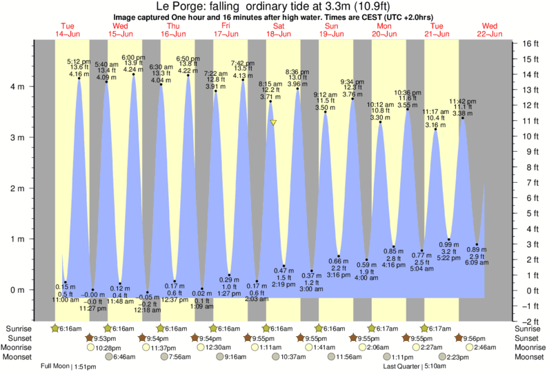 Image captured One hour and 16 minutes after high water (falling ordinary tide). Tide height was 3.3m (10.9 ft). Range 4.62m (15.2 ft). Toggle tide graph