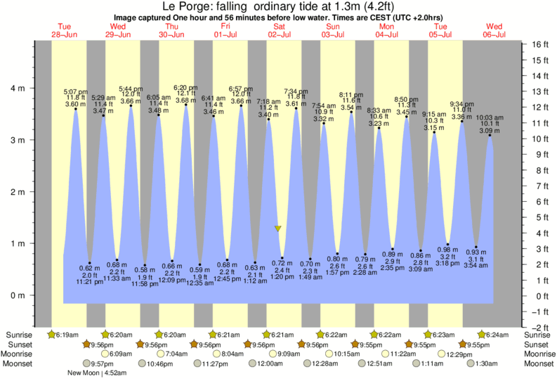 Image captured One hour and 56 minutes before low water (falling ordinary tide). Tide height was 1.3m (4.2 ft). Range 4.62m (15.2 ft). Toggle tide graph