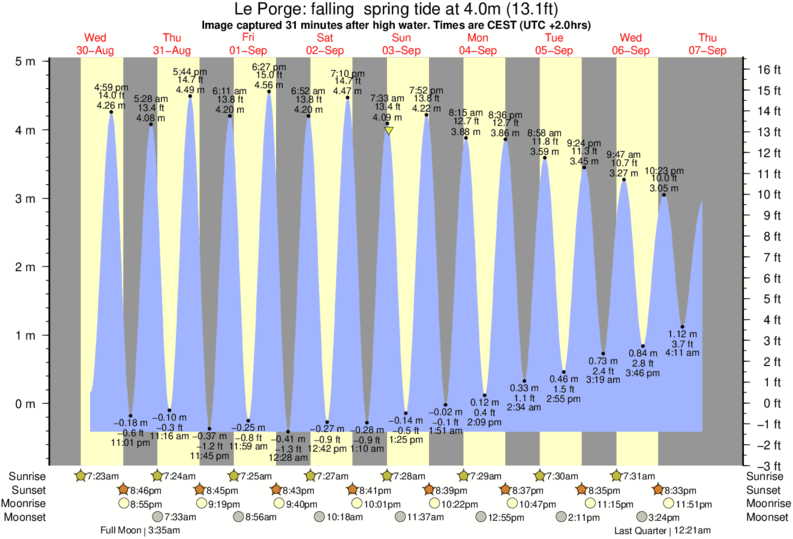 Image captured 31 minutes after high water (falling spring tide). Tide height was 4.0m (13.1 ft). Range 4.97m (16.3 ft). Toggle tide graph