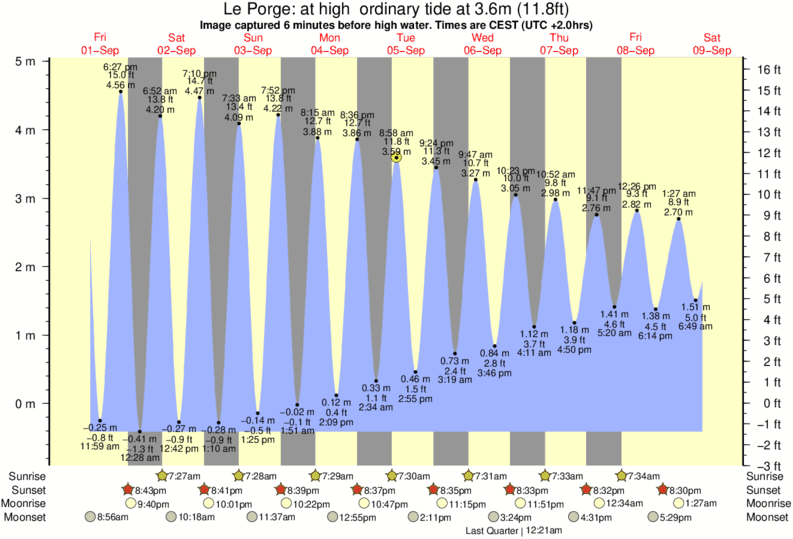Image captured 6 minutes before high water (at high ordinary tide). Tide height was 3.6m (11.8 ft). Range 4.97m (16.3 ft). Toggle tide graph
