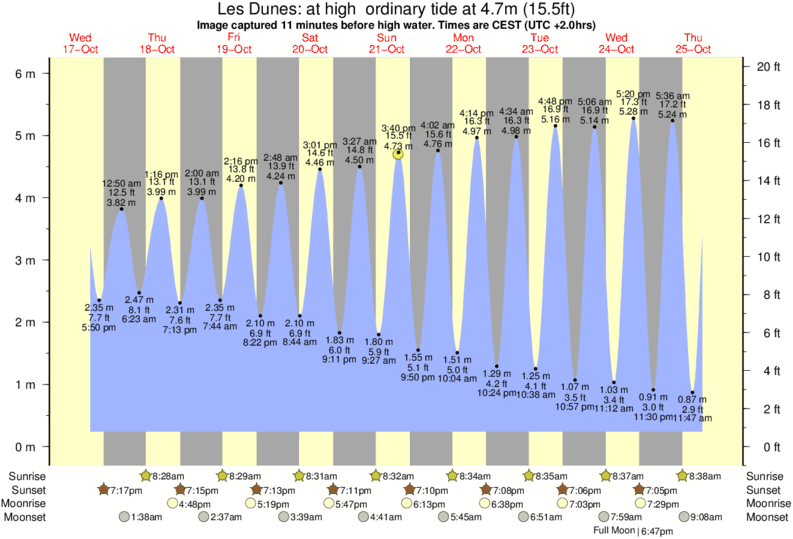 Image captured 11 minutes before high water (at high ordinary tide). Tide height was 4.7m (15.5 ft). Range 5.47m (17.9 ft). Toggle tide graph