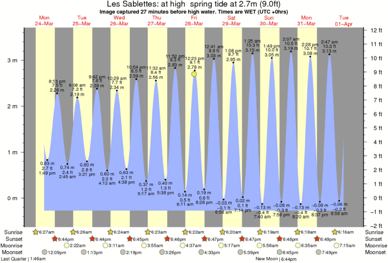 Image captured 27 minutes before high water (at high spring tide). Tide height was 2.7m (9.0 ft). Range 3.62m (11.9 ft). Toggle tide graph