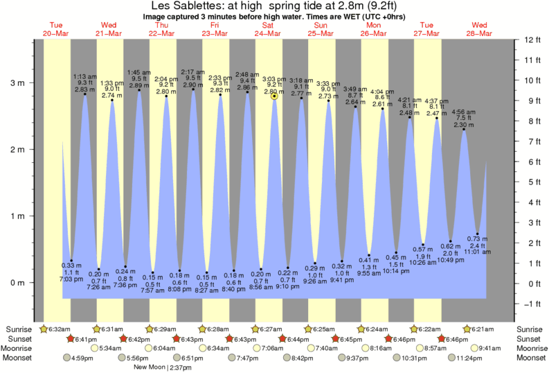 Image captured 3 minutes before high water (at high spring tide). Tide height was 2.8m (9.2 ft). Range 3.54m (11.6 ft). Toggle tide graph