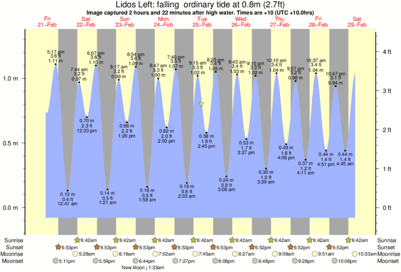 Image captured 2 hours and 22 minutes after high water (falling ordinary tide). Tide height was 0.8m (2.7 ft). Range 1.33m (4.4 ft). Toggle tide graph