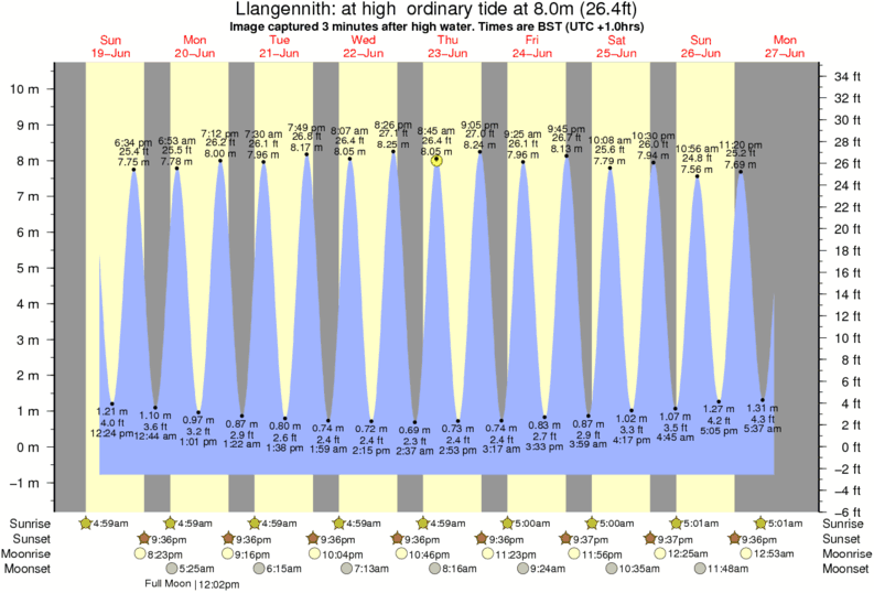 Image captured 3 minutes after high water (at high ordinary tide). Tide height was 8.0m (26.4 ft). Range 10.47m (34.4 ft). Toggle tide graph