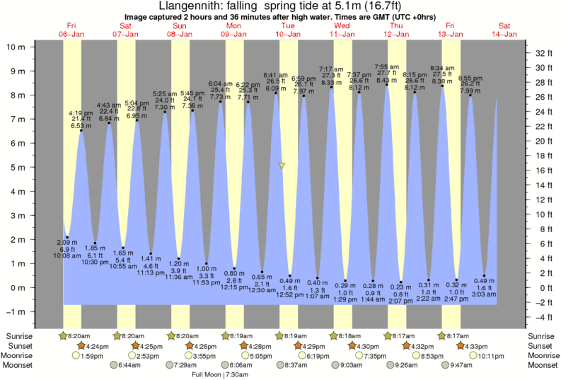 Image captured 2 hours and 36 minutes after high water (falling spring tide). Tide height was 5.1m (16.7 ft). Range 10.00m (32.8 ft). Toggle tide graph