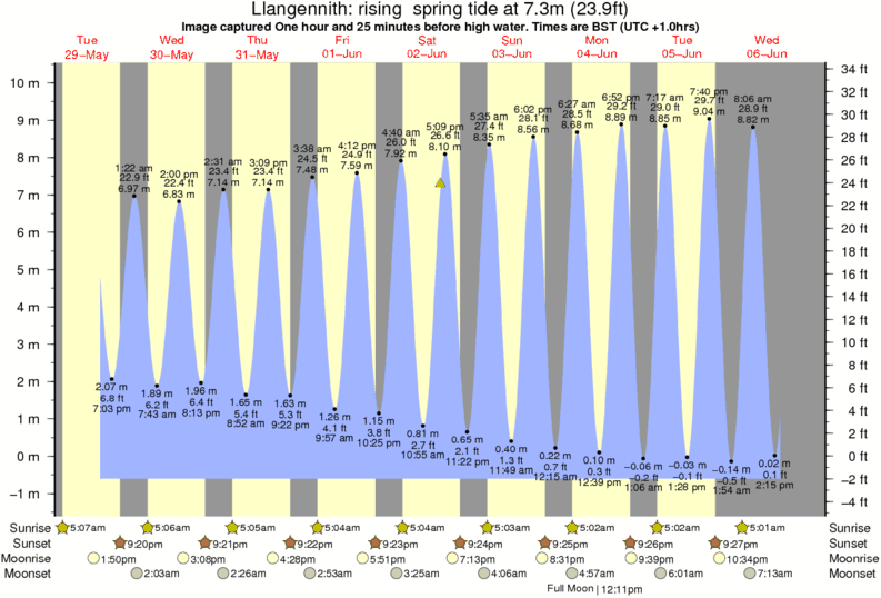 Forecast wind and swell just offshore from Llangennith around the time the photo was taken