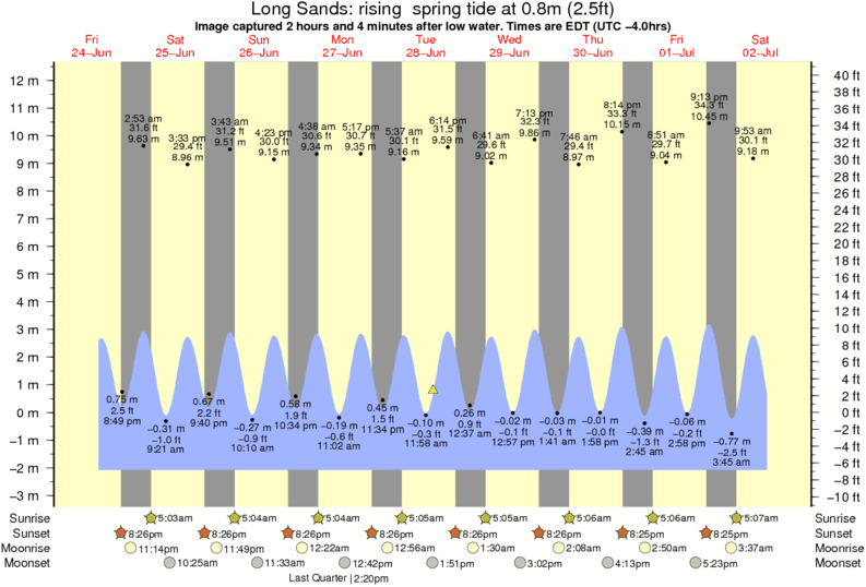 Image captured 2 hours and 4 minutes after low water (rising spring tide). Tide height was 0.8m (2.5 ft). Range 13.41m (44.0 ft). Toggle tide graph