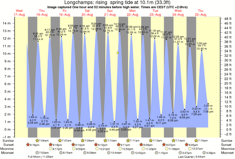 Image captured One hour and 52 minutes before high water (rising spring tide). Tide height was 10.1m (33.3 ft). Range 13.28m (43.6 ft). Toggle tide graph