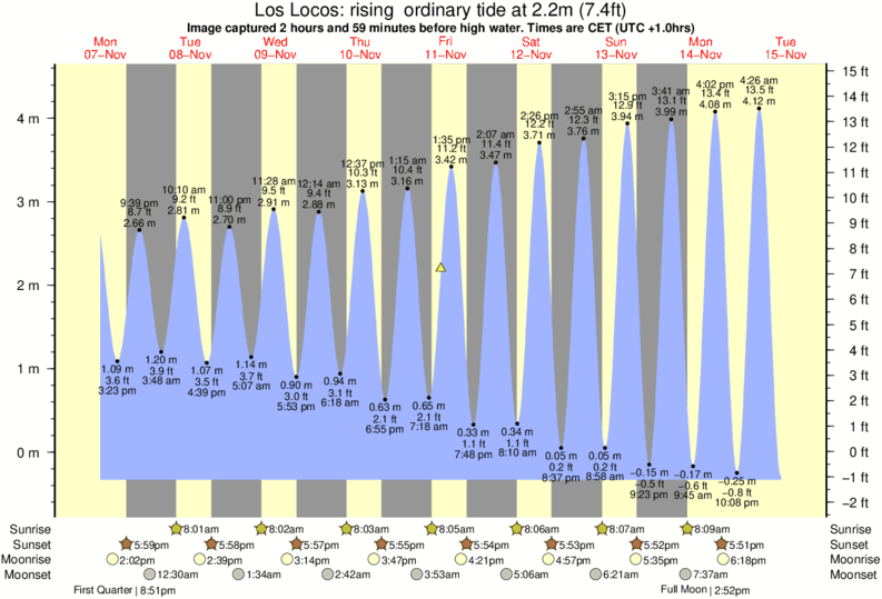 Image captured 2 hours and 59 minutes before high water (rising ordinary tide). Tide height was 2.2m (7.4 ft). Range 4.53m (14.9 ft). Toggle tide graph