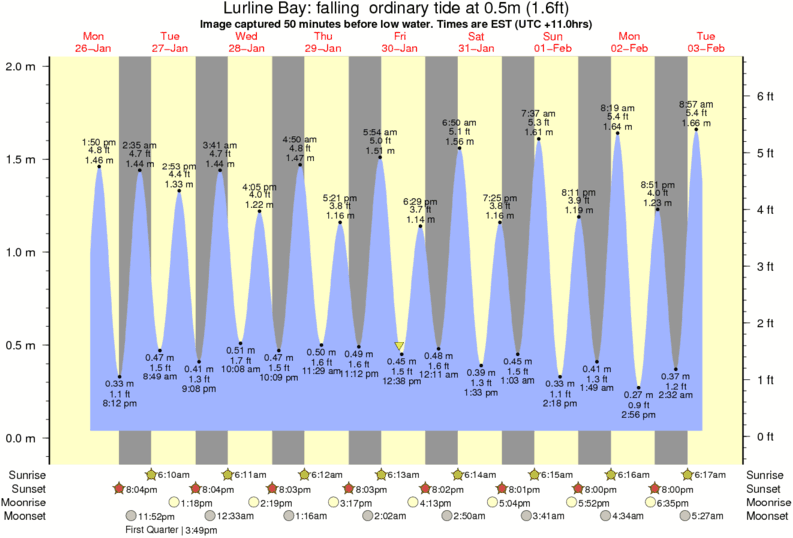 Forecast wind and swell just offshore from Lurline Bay around the time the photo was taken