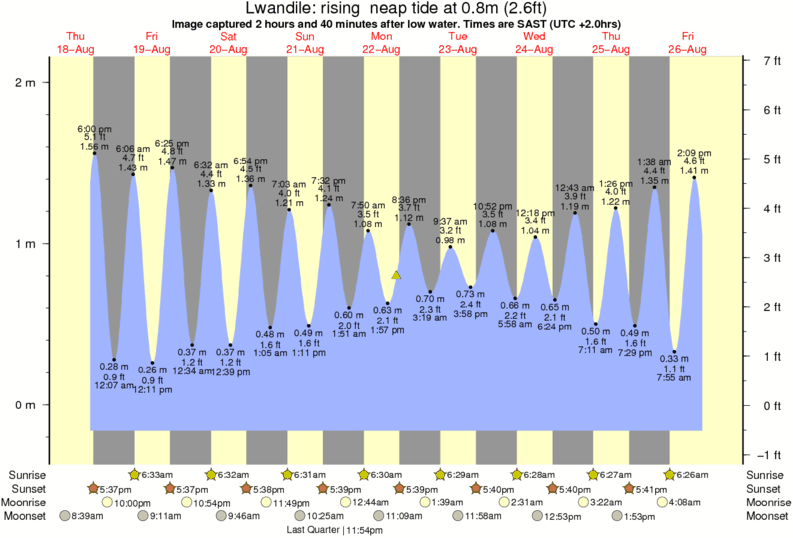 Image captured 2 hours and 40 minutes after low water (rising neap tide). Tide height was 0.8m (2.6 ft). Range 2.11m (6.9 ft). Toggle tide graph