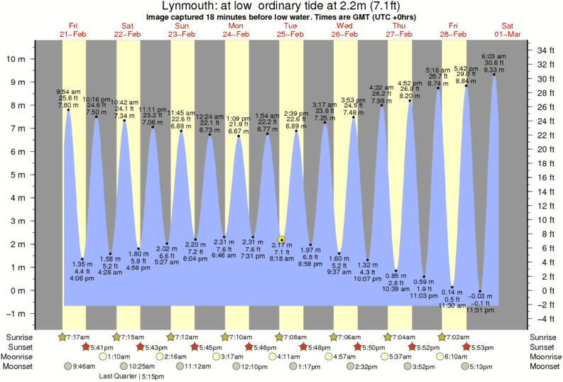 Image captured 18 minutes before low water (at low ordinary tide). Tide height was 2.2m (7.1 ft). Range 10.43m (34.2 ft). Toggle tide graph