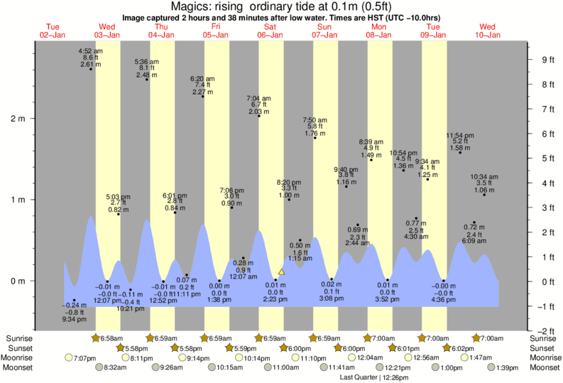 Image captured 2 hours and 38 minutes after low water (rising ordinary tide). Tide height was 0.1m (0.5 ft). Range 2.98m (9.8 ft). Toggle tide graph