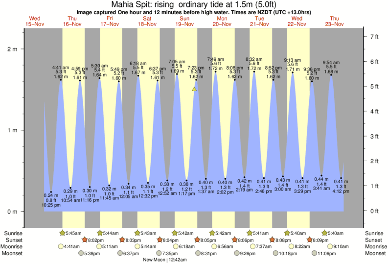 Image captured One hour and 12 minutes before high water (rising ordinary tide). Tide height was 1.5m (5.0 ft). Range 2.05m (6.7 ft). Toggle tide graph