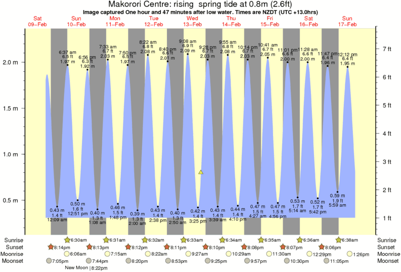 Forecast wind and swell just offshore from Makorori Centre around the time the photo was taken