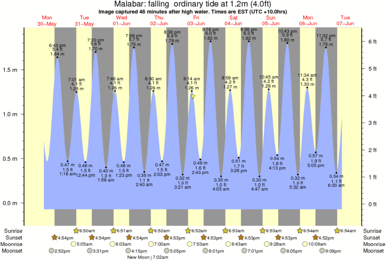 Image captured 46 minutes after high water (falling ordinary tide). Tide height was 1.2m (4.0 ft). Range 1.86m (6.1 ft). Toggle tide graph