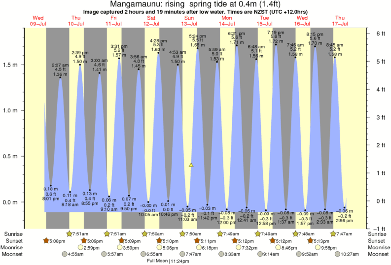 Forecast wind and swell just offshore from Mangamaunu around the time the photo was taken