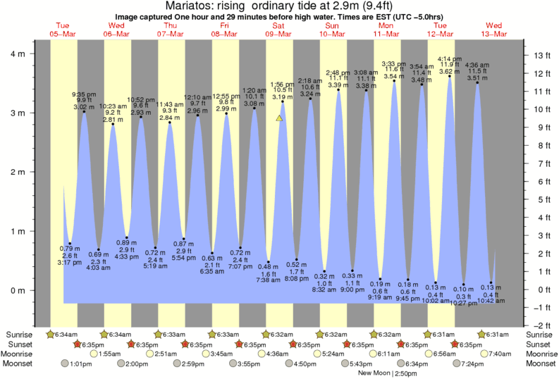 Image captured One hour and 29 minutes before high water (rising ordinary tide). Tide height was 2.9m (9.4 ft). Range 4.05m (13.3 ft). Toggle tide graph