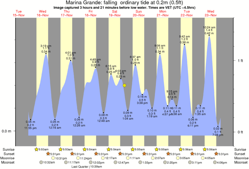 Forecast wind and swell just offshore from Marina Grande around the time the photo was taken