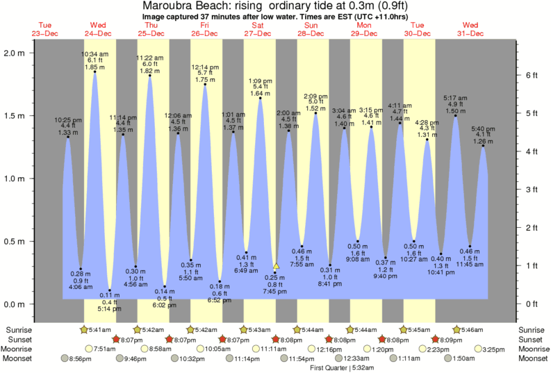 Forecast wind and swell just offshore from Maroubra Beach around the time the photo was taken