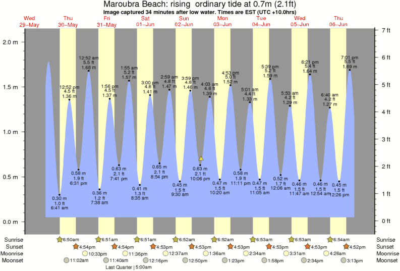 Image captured 34 minutes after low water (rising ordinary tide). Tide height was 0.7m (2.1 ft). Range 1.91m (6.3 ft). Toggle tide graph