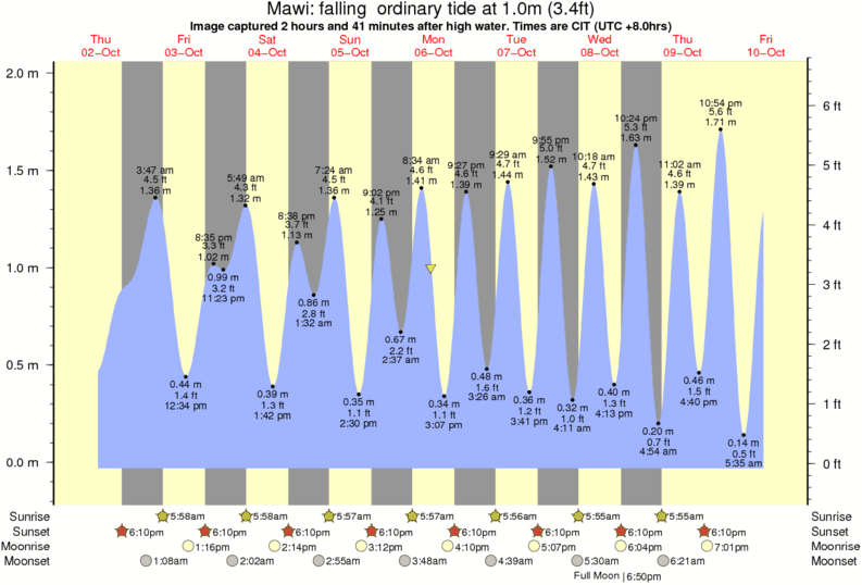 Image captured 2 hours and 41 minutes after high water (falling ordinary tide). Tide height was 1.0m (3.4 ft). Range 1.90m (6.2 ft). Toggle tide graph