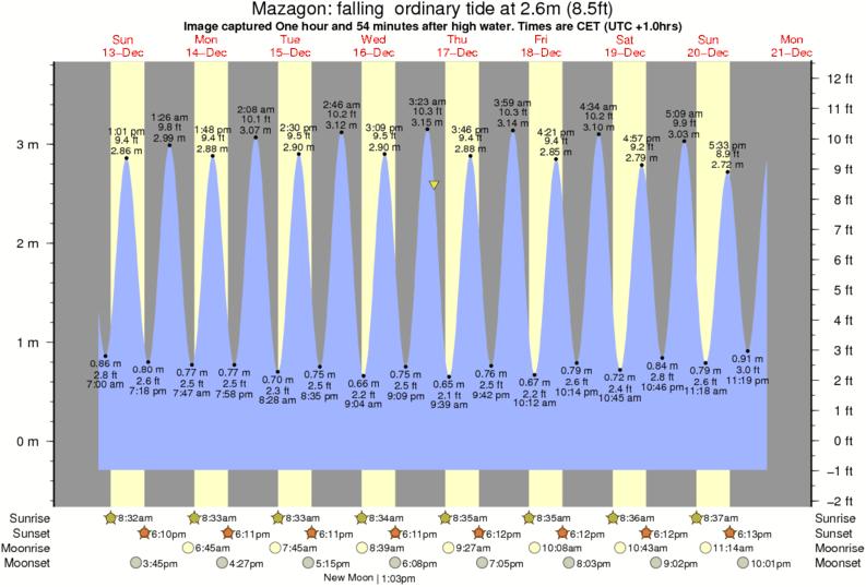 Forecast wind and swell just offshore from Mazagon around the time the photo was taken