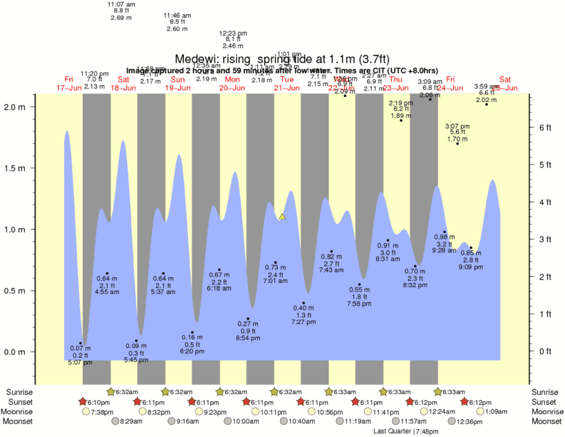 Image captured 2 hours and 59 minutes after low water (rising spring tide). Tide height was 1.1m (3.7 ft). Range 1.98m (6.5 ft). Toggle tide graph