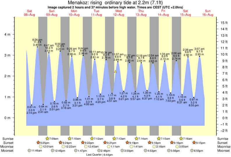 Image captured 2 hours and 37 minutes before high water (rising ordinary tide). Tide height was 2.2m (7.1 ft). Range 4.75m (15.6 ft). Toggle tide graph