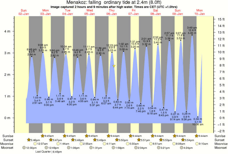 Image captured 2 hours and 9 minutes after high water (falling ordinary tide). Tide height was 2.4m (8.0 ft). Range 4.50m (14.8 ft). Toggle tide graph