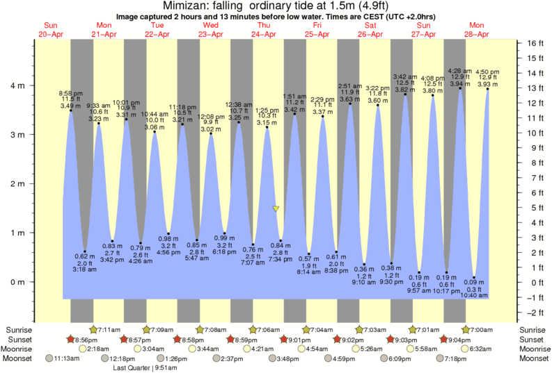 Forecast wind and swell just offshore from Mimizan around the time the photo was taken