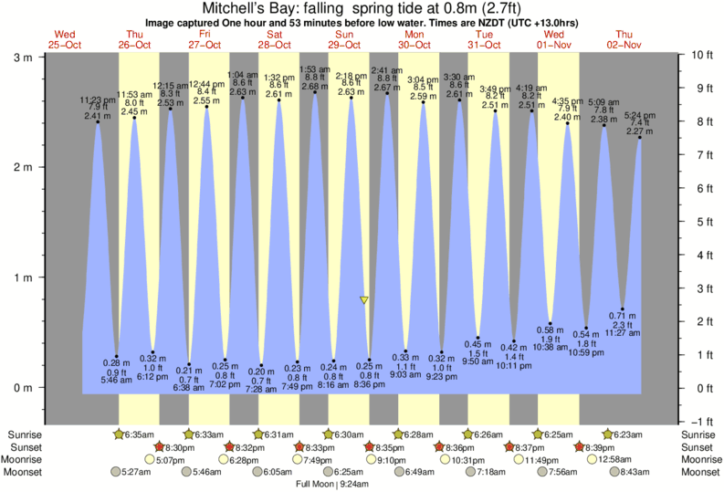 Image captured One hour and 53 minutes before low water (falling spring tide). Tide height was 0.8m (2.7 ft). Range 2.82m (9.3 ft). Toggle tide graph