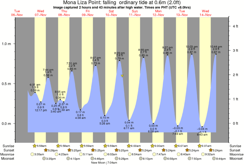 Image captured 2 hours and 43 minutes after high water (falling ordinary tide). Tide height was 0.6m (2.0 ft). Range 1.31m (4.3 ft). Toggle tide graph