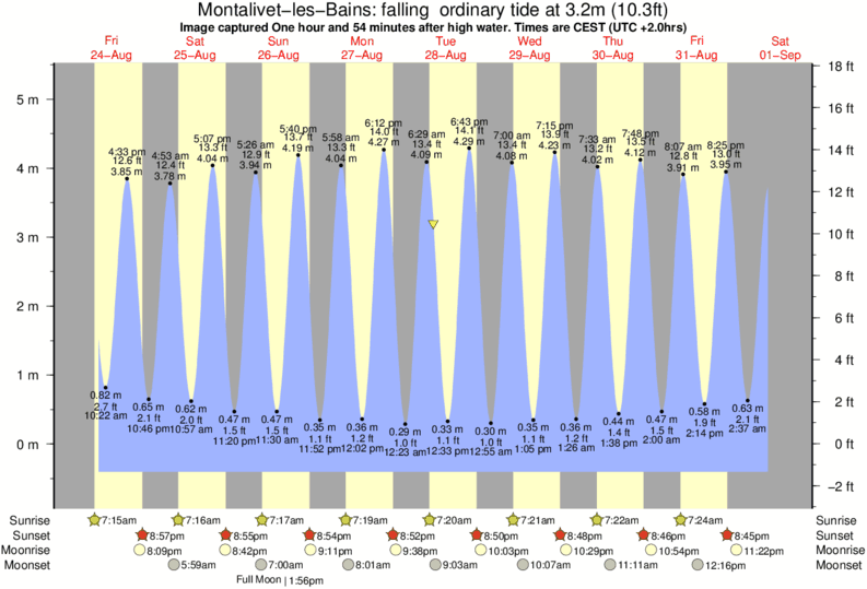 Image captured One hour and 54 minutes after high water (falling ordinary tide). Tide height was 3.2m (10.3 ft). Range 5.39m (17.7 ft). Toggle tide graph