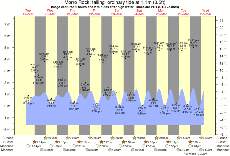 Image captured 2 hours and 2 minutes after high water (falling ordinary tide). Tide height was 1.1m (3.5 ft). Range 8.46m (27.8 ft). Toggle tide graph
